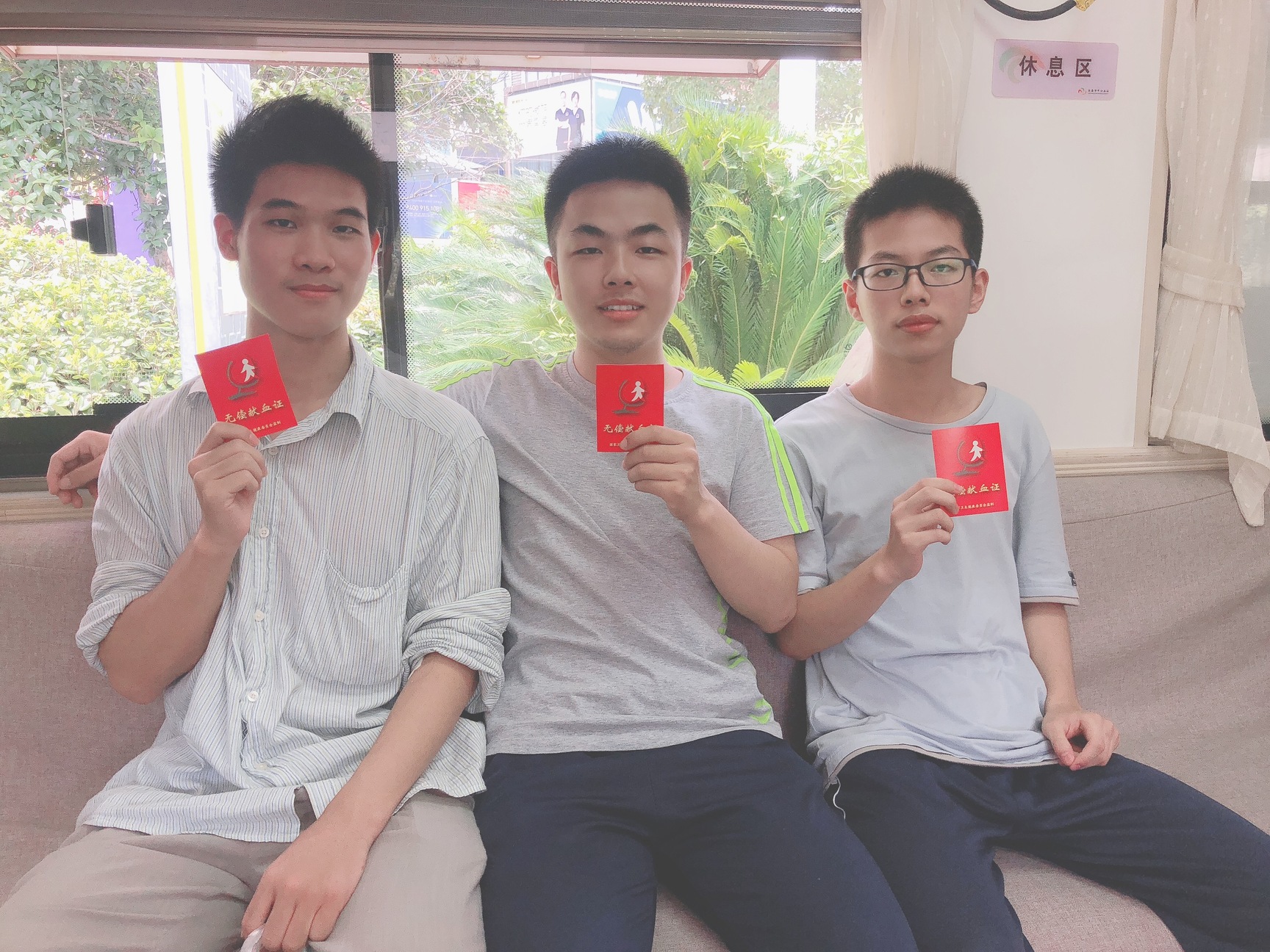 王宇欣高考完来献血后,在她的呼吁下,今天又领着同学胡煜和胡艳珍来奉献爱心,用热血彰显少年风采,用红色的爱心点缀青春的色彩,以特殊的方式告别高中生活迎接大学生活。