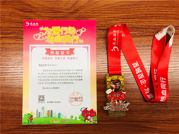 献血+运动,让血液不停,让生命不止。同时完成一次献血、一次6公里运动、一次朋友圈分享点赞三个任务,即可领取荣誉证书和精美奖牌一份。105个城市一起热血同行,全国超1.3万位英雄参与,442081个热度和12426爱心点赞是对活动的肯定和支持。据不完全统计,短短15天时间,400个名额爆满,其中229人成功完成了全部3项6·1·4活动挑战,235人光荣地完成了献血任务。其中,捐献全血的有91人,累计捐献33700毫升;捐献成分血的有144人,累计近个274个治疗量。成功完成活动挑战的热血英雄们,将正式获得6月活动特别定制的热血纪念章、热血证书!