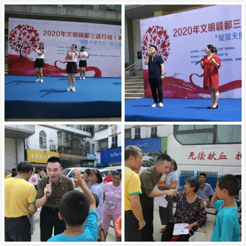 7月14号上午,由江西省文明办主办,江西交通广播承办,江西省血液中心等单位协办的2020年“文明赣鄱三送”志愿服务行动首场活动走进南昌后花园——湾里。