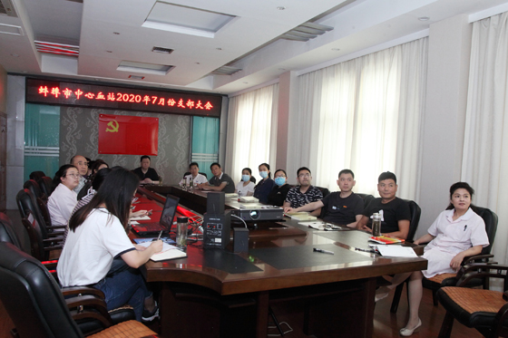 7月15日下午,蚌埠市中心血站党支部在五楼北会议室召开党员大会。站党支部书记、站长董柱主持会议,20名党员参加。