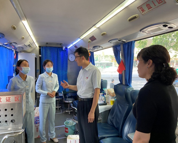 中心党委书记岳立宏、党委副书记刘伟峰、工会主席李伍升、中心副主任张淑琴等带领工作人员携带饮料等消暑降温慰问品,到各个采血车看望和慰问奋斗在高温一线的工作人员和献血者,在炎炎夏日带来了丝丝清凉。