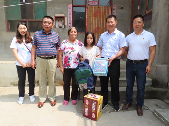 近午,天空中没有一丝云、没有一点风,头顶上一轮烈日,把树木都晒的无精打采、懒洋洋的,但这并没有影响我们为村民送卫生下乡的热情。会议结束后,市卫健委与我站领导一起慰问了部分老党员、困难群众和留守儿童,为他们送上了大米、面粉、食用油、火腿肠等,并送给2名留守儿童新书包、学习用具和百科全书。第二党小组党员也在村委会大院中开展为村民测血压、验血型、筛查乙肝病毒表面抗原、赠送灭害灵等服务活动。汗水顺着脸颊流下浸湿了我们的衣服,但我们的脸上却闪耀着灿烂的笑容。我们希望在脱贫攻坚的道路上,坟沟村的村民能够大跨步前进,老人们健康长寿、孩子们快乐成长!