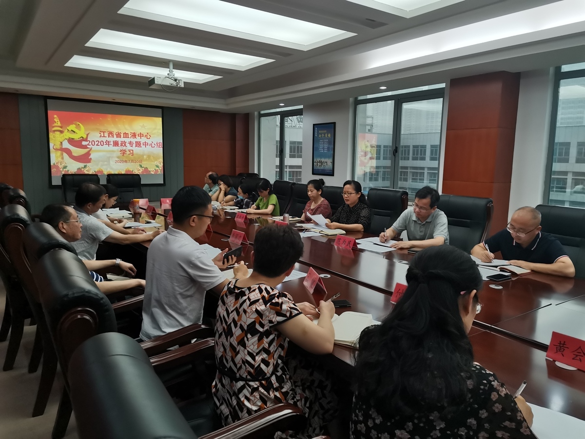 江西省血液中心2020年“党风廉政建设宣传教育月” 系列活动之二:开展“廉政专题”中心组学习