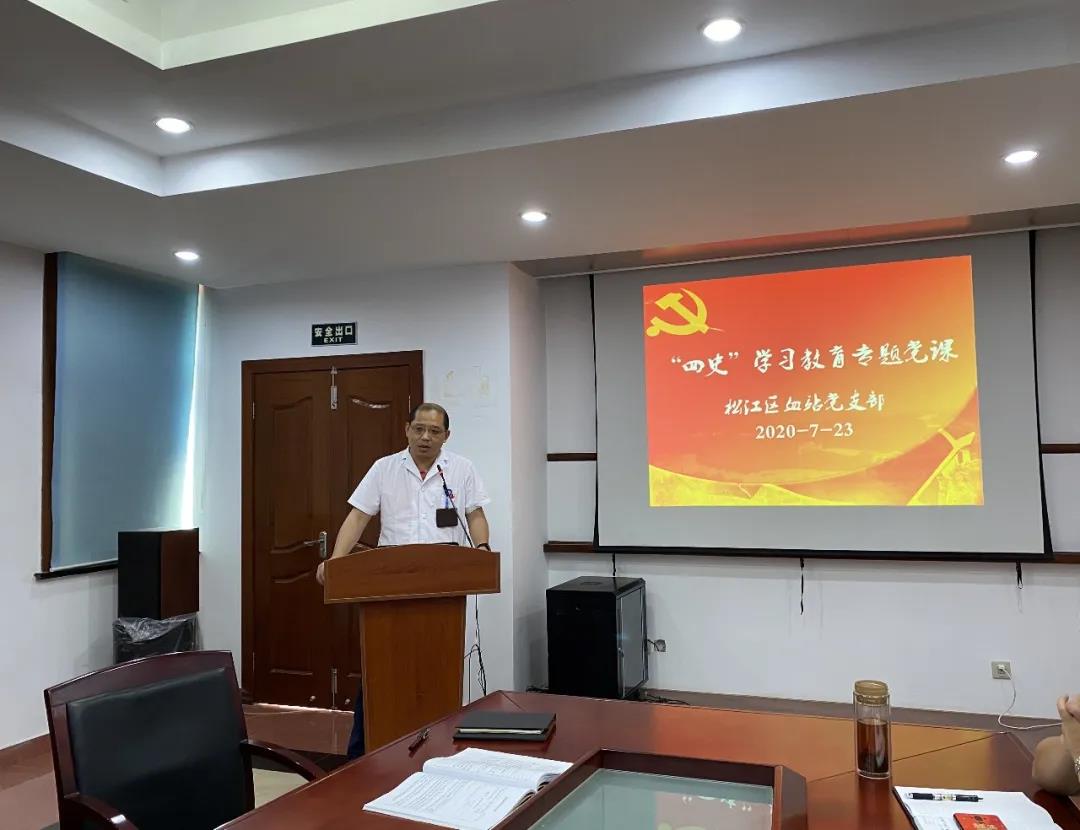 为深入学习贯彻十一届市委九次全会精神,扎实推进血站党支部“四史”学习教育,7月23日下午,血站在科教室召开了“四史”学习教育专题党课活动,会议由党支部书记陆军主持,全站党员和团员青年参加会议。