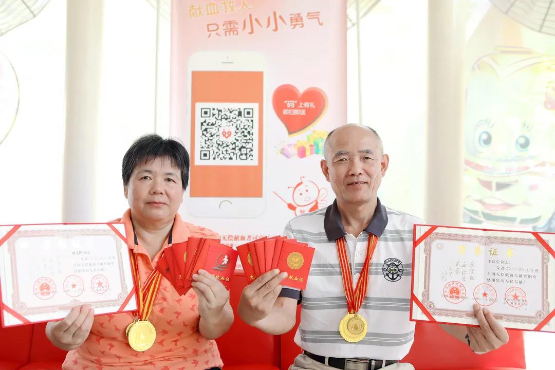 多年来,王良堂、胡文辉夫妇分别无偿捐献全血23次(累计8400ml)、31次(累计11400ml),两人先后荣获了全国无偿献血奉献奖。熟悉这对热心夫妻的邻居和朋友们,都尊称为他们为“大哥、大姐。”