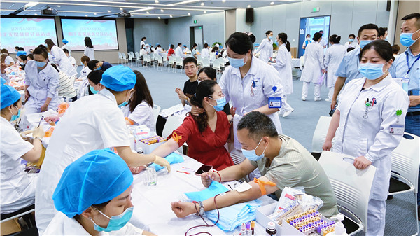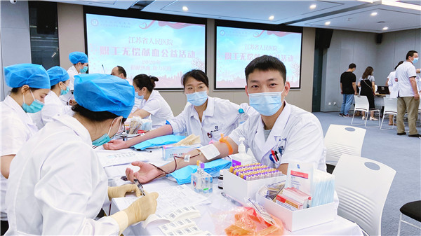 江苏省人民医院党委书记唐金海教授,党委副书记、院长赵俊教授,纪委书记薛明新教授等院领导在医务处、院办等职能部门负责人、各党总支书记的陪同下,慰问了献血活动现场的医务人员。