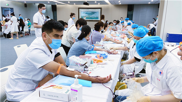 7月17日上午,在江苏省人民医院新门诊楼8楼会议室,也进行着一场致敬生命的善行活动。全院410名医护人员成功献血,累计捐献血液87150毫升,为急需血液救治的病人们,搭建起了从血管到血管的“生命之舟”。