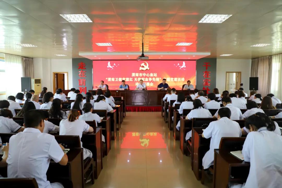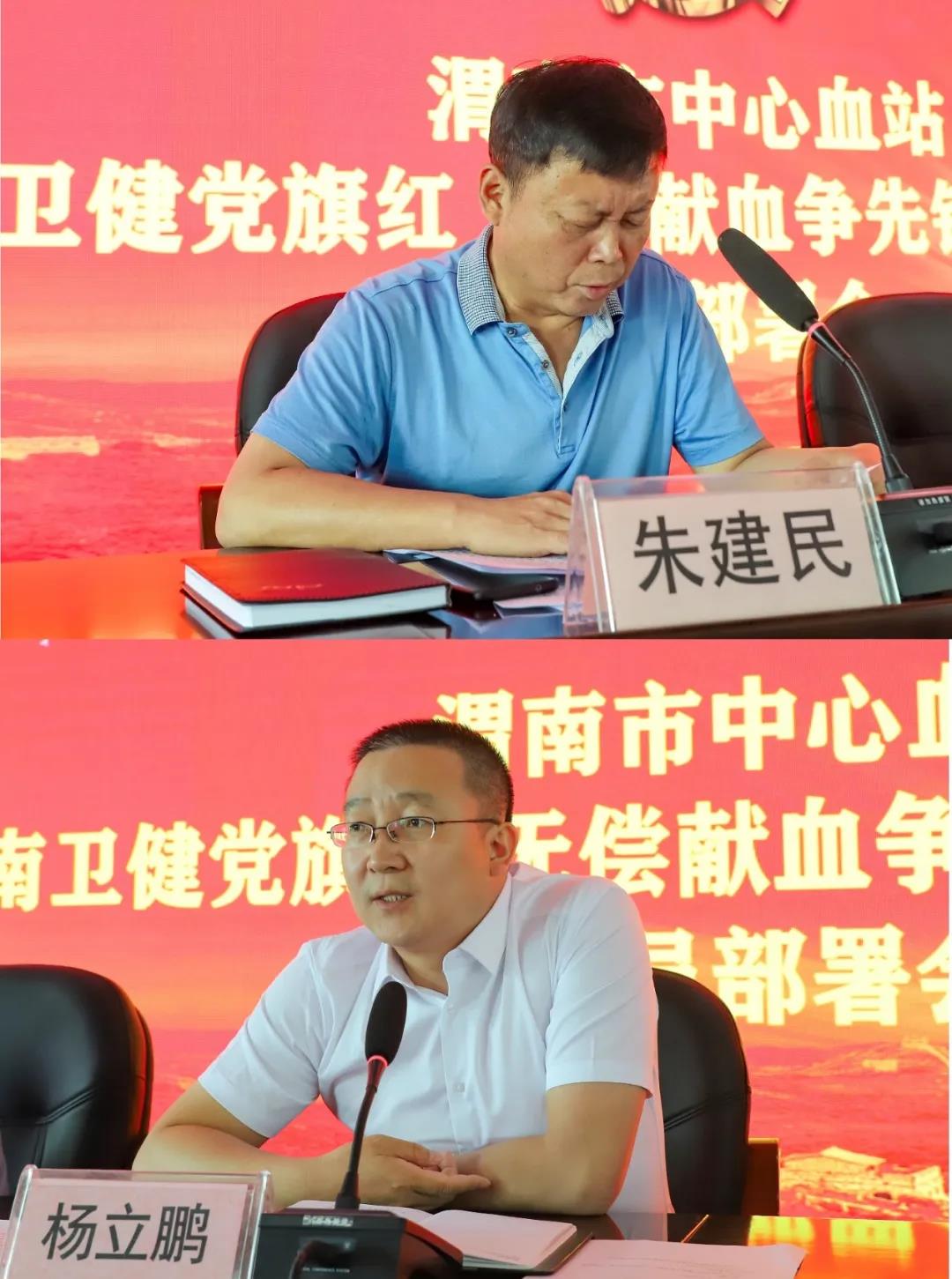 7月27日上午渭南市中心血站在五楼会议室组织全体干部职工召开“渭南卫健党旗红 无偿献血争先锋”主题党建活动动员部署会,会议由支部委员、副站长吴剑主持,市纪委监委派驻市卫健委纪检监察组组长杨立鹏受邀指导会议。