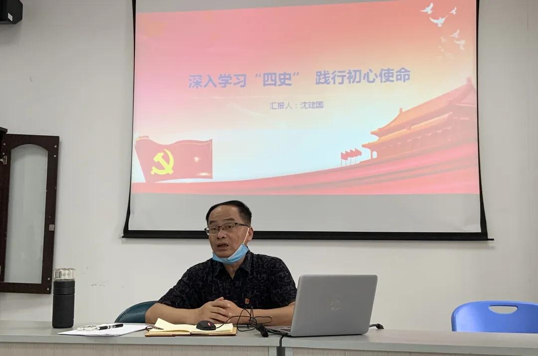 为深入开展“四史”学习教育,引导党员学好用好历史,进一步增强使命感和责任感,恰逢纪念中国共产党成立99周年之际,7月1日下午,青浦区血站党支部开展了一次主题党日活动,党支部书记沈建国同志以“深入学习四史 践行初心使命”为主题,为全体职工带来一场微党课。