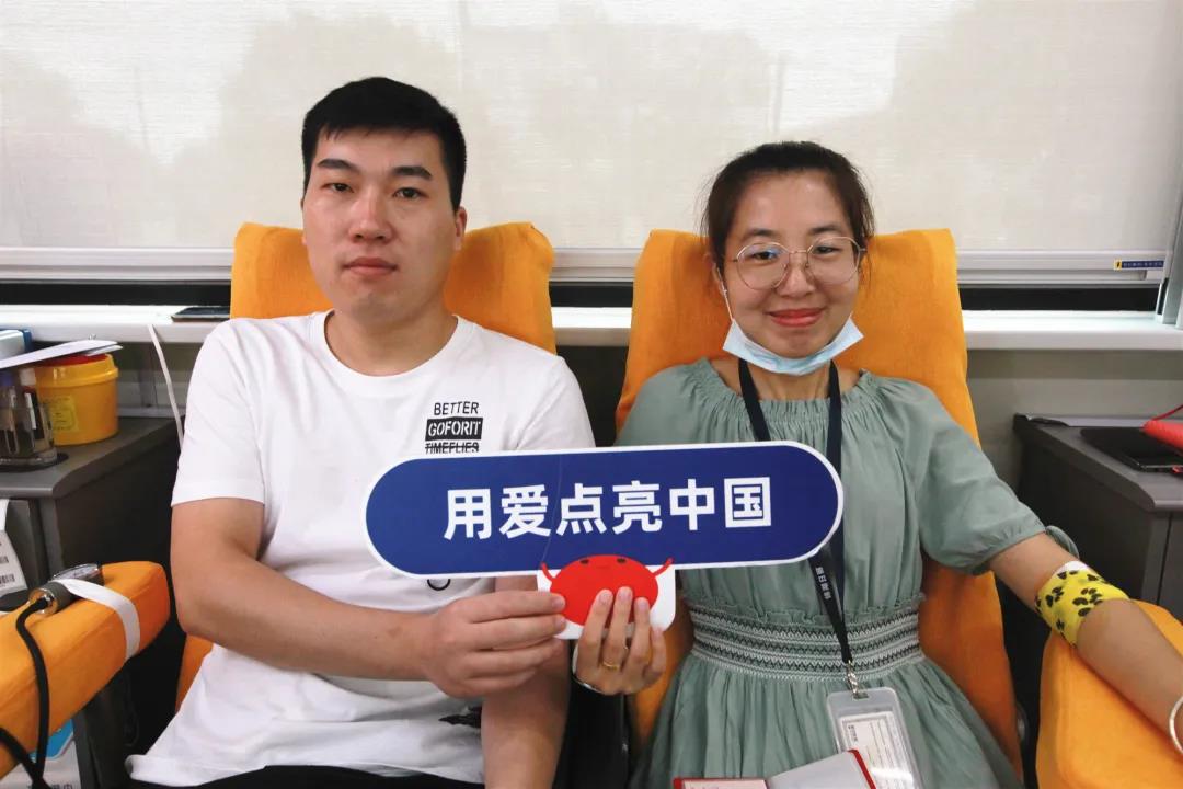 参加无偿献血的还有丁冲、李建学、唐银花等爱心员工,大家献血完毕止血、休息后重返各自的工作岗位。