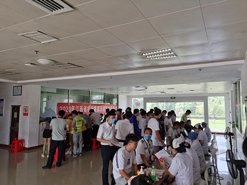 公司职工献血报名积极踊跃,参与人数多,为更好的组织,避免人群聚集,特意把献血活动延长到两天时间,以方便职工参加。急救中心工作人员前一天已经布置好献血会场,8月4日上午8点江西省血液中心献血车也提前到达现场,共同做好充分准备。