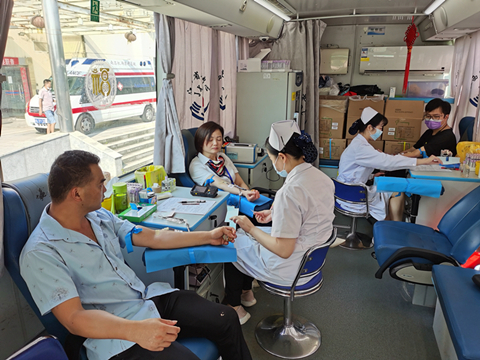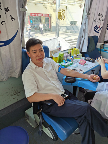 一股股鲜红的血液缓缓地流出,一袋袋血液,承载着一份份希望,一个个爱心。在献血的人员中,既有工作多年的老同志,也有刚刚参加工作的新员工,许多同志已经多次参加无偿献血活动。