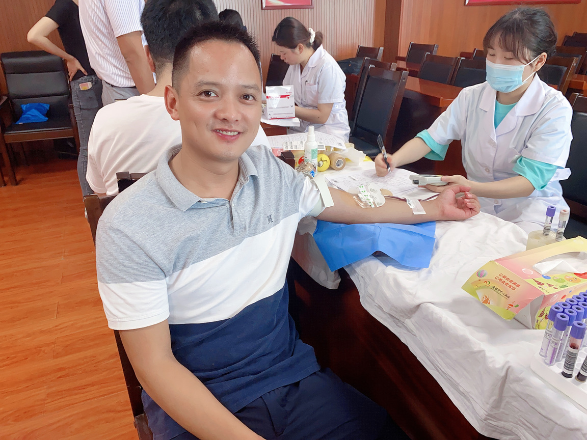 捐一分热血,献一份爱心,8月4日上午华赣传媒集团工会组织开展2020年“无偿献血 奉献爱心”活动,华赣传媒集团副总经理张文、金海强带头参与到献血活动中来。