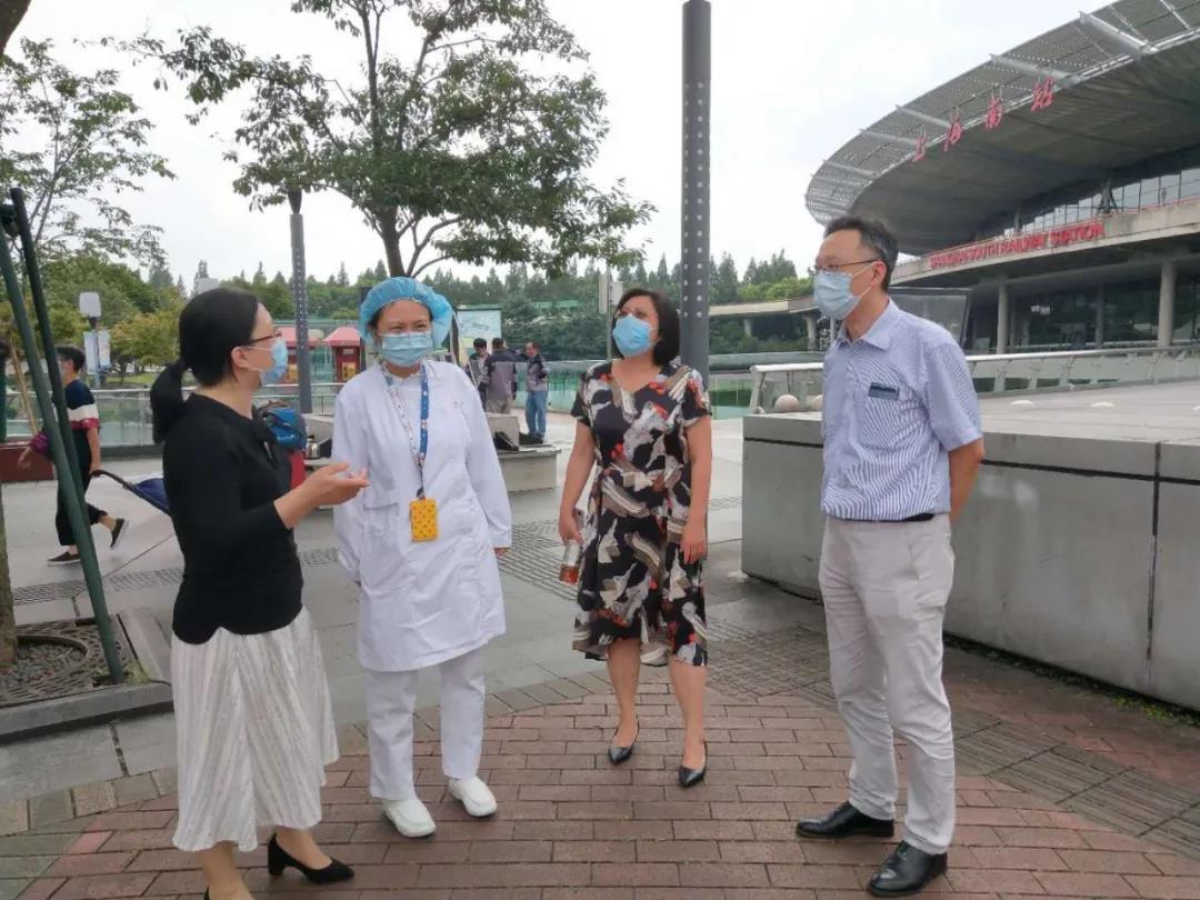 俞主任一行先后来到六百流动献血车、漕宝爱心献血屋和上海南站流动献血车。每到一处都首先对坚守在一线的工作人员表示慰问和感谢,并对各献血点的工作运行和血液募集情况进行了询问和交流,并叮嘱大家在高温期间做好自身和志愿者的防暑降温工作。