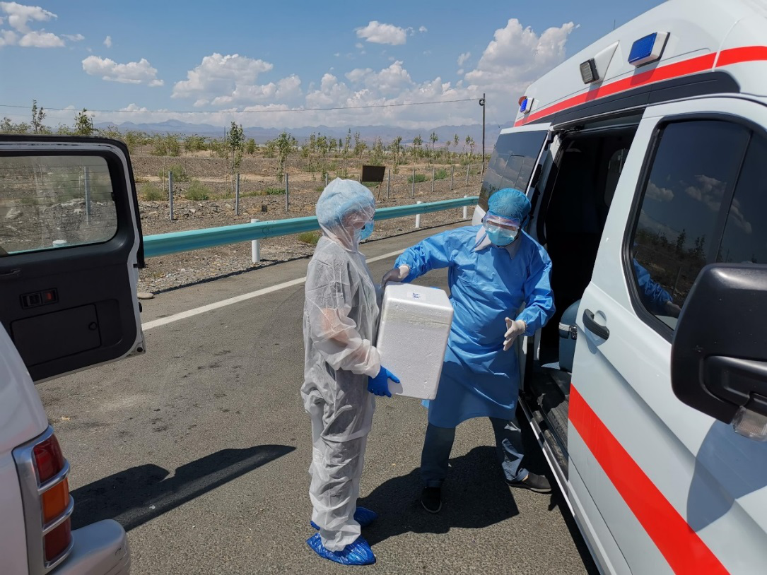 各地州血站接到通知后,积极响应,开展单采血小板宣传动员工作,支援乌鲁木齐。2020年7月18日开始,昌吉州中心血站向乌鲁木齐调拨单采血小板。7月26日上午11时,哈密地区中心血站和乌鲁木齐市血液中心的工作人员分别从各自单位出发,在吐鲁番收费站进行血液交接。承载着党和人民关心的19袋血小板被接回血液中心,待检测合格后可发往临床供急危重症患者血液救治。