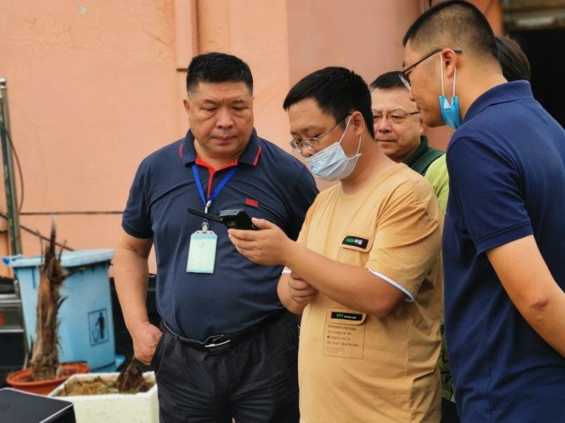 市血液供保中心党委书记、主任刘绍辉与工程师一起调试