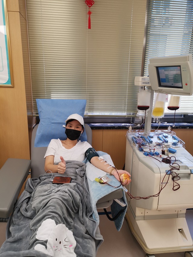 高晚霞,第一次参加成分献血,却是一位老献血者。自2005年她的母亲生病急需用血她开始了解血液对患者生命的重要,从此萌发了要献血助人的想法,之后她坚持“每年献血每年助人”,不知不觉已经坚持了十五年。昨天在接到中心的成分招募电话后,她毫不犹豫立即赴约参加捐献成分血。在充足的准备下顺利地通过了体检、献血前检测并成功捐献了一个治疗单位的成分血。当我们都在感慨,能坚持这么多年很不容易时,她本人却觉得献血是一件很平凡的事情,表示愿意继续捐献成分血帮助更多的病人。