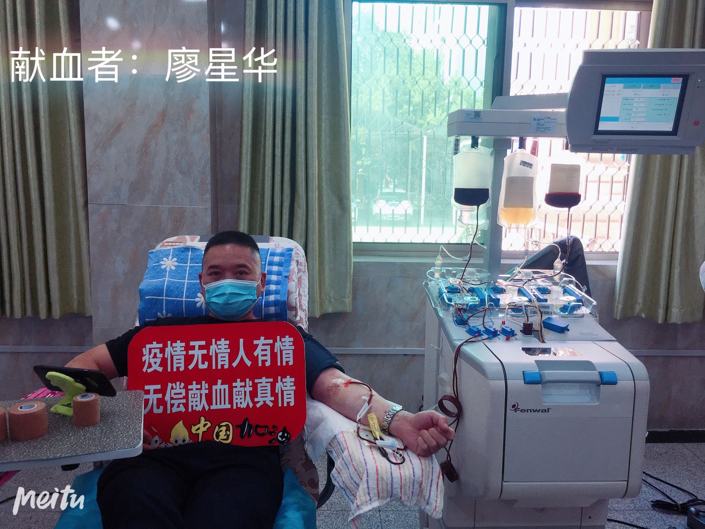 善良的志愿者廖新华说:“在这次疫情期间,看到血站发出血液告急的消息后,就积极报名参加献血,希望能用自己的行动带动更多的人加入无偿献血团队。”他已捐献全血6次,共计2000ml;捐献血小板41次,共计47.8个治疗量。