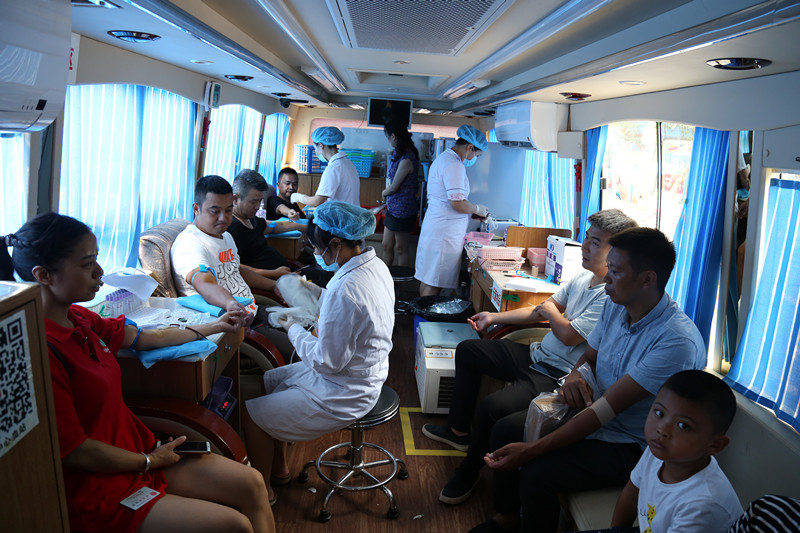 申通快递公司企业员工钟正权是第一次参加献血的志愿者,当他走上献血车,轮到自己献血时,献血椅上已坐满了前来献血的男男女女。在谈到今天自己为什么前来献血时,钟正权介绍说:“我们公司有30多名员工,今天我们公司有好几个员工都来献血了,在创文的当下,我们公司号召全体员工在文明礼貌做好本职工作的前提下,多做一些志愿者服务和社会公益行动。”只要人人都献出一点爱,世界将变成美好的人间。80年出生的王远碧是一家酒店的员工,她在献血时表示:“今天的天气这么热,有这么多人前来献血,宜宾人的爱心真是难能可贵。”一位母亲在献血时带上了自己的孩子,这位母亲表示:“父母是孩子最好的老师,从小让孩子耳濡目染乐于助人的爱心活动,这有助于孩子的健康成长!”