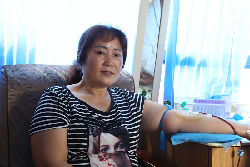 父母是孩子最好的老师!图为一个孩子守着母亲献血的场景