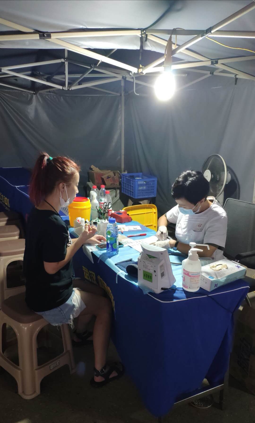 8月8日晚,佳丽广场献血点上献血者在体检化验