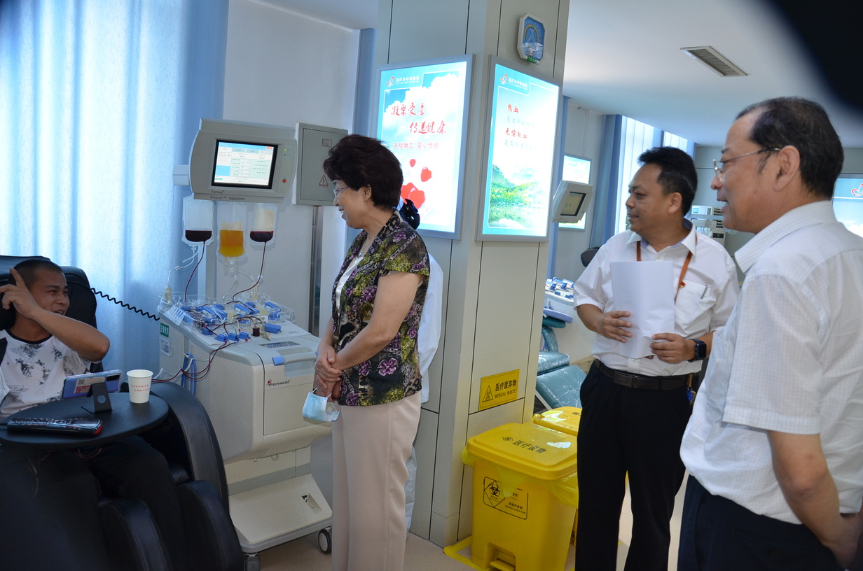 在市中心血站站长巨昆等陪同下,侯婕一行参观了市中心血站血液供应科、质量管理科、检验科、成分科等科室,并到采血室看望献血者,感谢他们积极参与无偿献血。