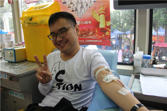 傅舒同是海口城建集团的老员工,同时他也是无偿献血队伍的老成员了,第六次献血的他微笑的说道:“上次公司在世界献血者日组织的献血活动因为工作原因没赶上,这次终于可以和同事们一起来献血了。”