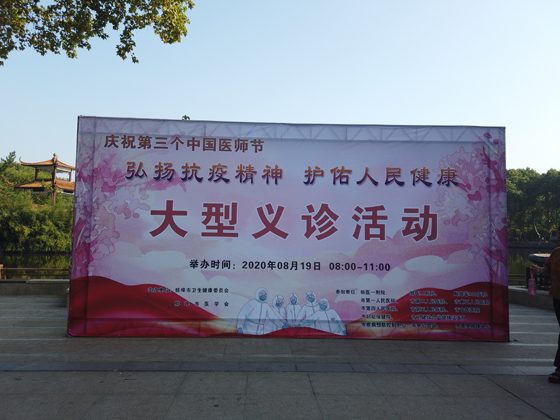 2020年8月19日是第三个中国医师节,市中心血站积极组织医务工作者参加全市卫健系统在津浦大塘公园南门开展的“弘扬抗疫精神、护佑人民健康”为主题的义诊宣传庆祝活动。