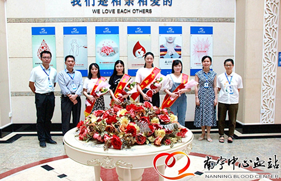 2019年南宁中心血站“采血之星”是在个人采血人数为依据的基础上,参考工作差错、献血者投诉、考试成绩及献血者满意度(服务态度)等指标,最终评选出韦慧芳、谢季津、李沫珊、吴芬芬等4名优秀护士。在欢送仪式上,血站站长余梅及党委书记梁立阳分别为采血之星送上鲜花和绶带,以表扬她们在采血岗位上做出的贡献,感谢她们在岗位上兢兢业业,履职尽责,在平凡的工作岗位上做出不平凡的业绩。