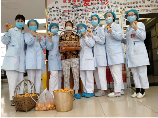 代老师精神饱满,看见我们更是笑得眼睛眯成一条缝,热情地说:“美女们,这是我在老家摘的新鲜枇杷,非常的甜,给你们带了两篮,让你们也尝尝,各位辛苦了!是你们的热忱服务让我们献血者感到了无限的温暖,你们就是我的家人。”听了代老师的话,我们激动不已,感慨万千。代老师已经不是第一次为我们送枇杷了,这是她对我们的信任,是对我们工作的认可与激励。甜甜的枇杷在嘴里回味,更是浸到了我们的心里 ,由心散发出灿烂的微笑。我们会以最热忱的服务来回报她们,会本着初心继续前行。
