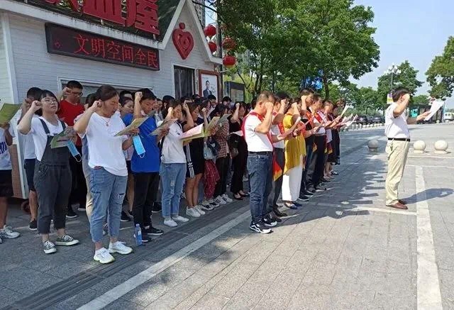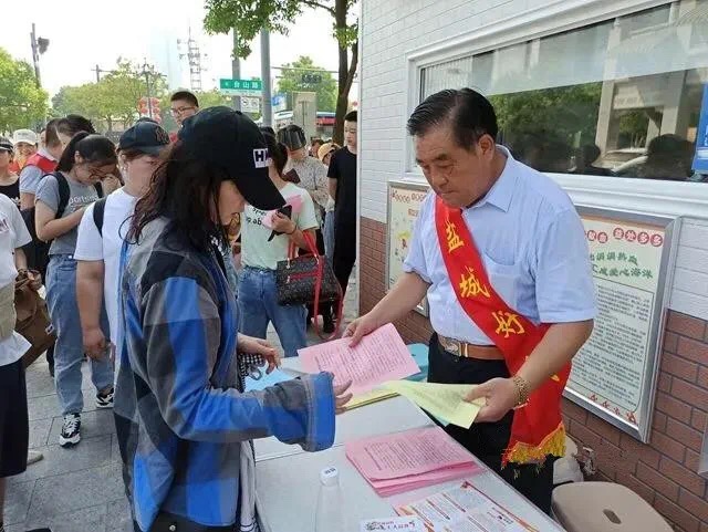 8月24日上午,在盐城市文明家庭代表陆仁平带领下,盐城市中心血站工作人员、盐城市红十字会无偿献血志愿服务队的全国五好文明家庭代表、盐城市文明家庭代表、盐城好人代表、亭湖好人代表、全国无偿献血奉献奖金奖获得者代表、星级红十字志愿者代表和各行各业的40户家庭代表,齐聚新四军重建军部旧址广场,一起宣读“公筷公勺、分餐分食”健康用餐倡议书,接着开展爱国卫生运动,助力盐城创建全国文明城市。大家兵分多路到公交站台、大润发超市等地,开展餐桌光盘行动、无偿献血知识宣传,同时分发创文宣传资料,向市民宣讲“盐城市民文明16条”,对不文明行为进行劝导。大家还头顶烈日,对周边环境进行卫生大扫除。