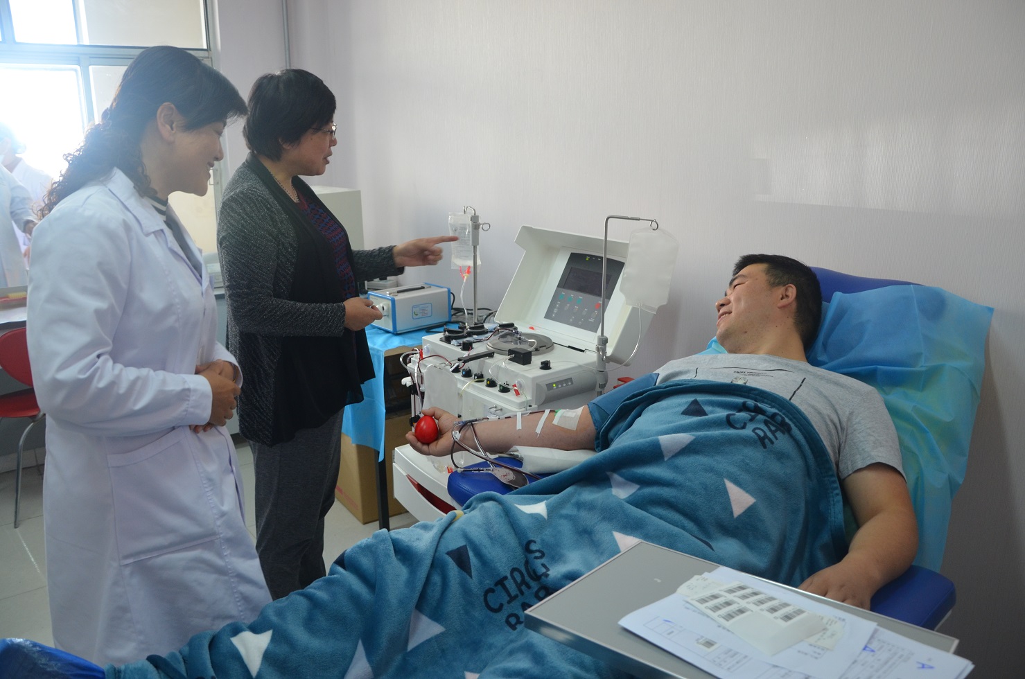 专业指导,填补技术空白;敢为人先,捐献机采血小板。上午十点,在省血液中心专家们的细心指导下,甘南州首例机采血小板成功开采,填补了该州机采成分血的空白,至此全省14个市州均已开展了机采血小板工作。甘南州第一例机采血小板捐献者丁旭红,是一名个体经营者。他说:很高兴今天能够成为甘南州第一例捐献血小板的爱心人士,因为我之前献过血,所以我也不是很紧张,而且我也没有感觉到不舒服。我希望以后能有更多的人参与到捐献血小板的活动中来,用自己的微薄之力帮助那些在病床上苦受煎熬的患者。