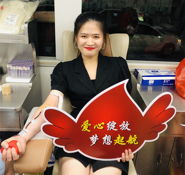 不一会儿,小志愿者们成功招募到一位献血者,她叫文慧敏,一个湖南妹子,特意从长沙跑来宜春这边找朋友,见到小志愿者们宣传无偿献血,毫不犹豫地拉着朋友填表、检测,虽然她朋友因为特殊情况没有捐献成功,但是她说:“没事,这次不行,下次我再陪你来!”话音刚落,湖南妹子坐到献血椅上,伸出手臂,配合工作人员采血……尖锐的针头扎入血管,鲜红的血液伴着体温缓缓流出,没有献血经验的文慧敏并没有觉得疼痛,“这是一种奇妙的感觉,我和宜春有缘,今天又和无偿献血续缘,在这个由陌生到熟悉的城市,献出我的一点点爱心,让宜春可以有我来过的痕迹!”文慧敏有些激动,这是她捐献的第一袋血液。