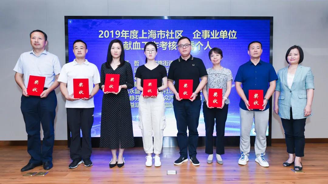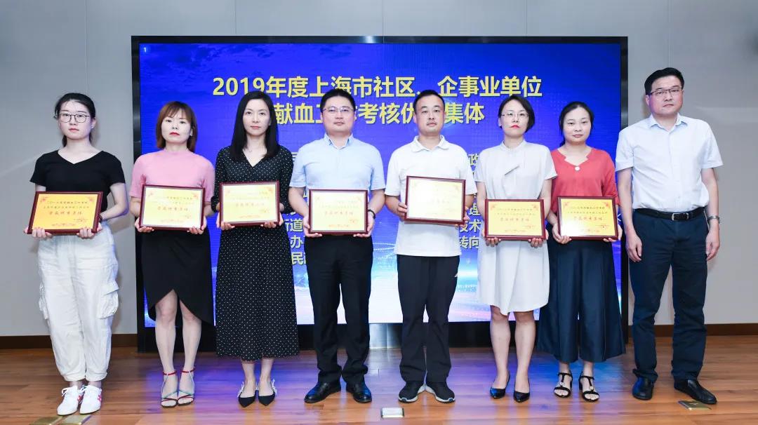 会议表彰了嘉定区荣获2018和2019年度上海市社区、企事业单位献血工作考核优秀集体和个人。
