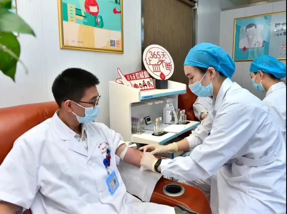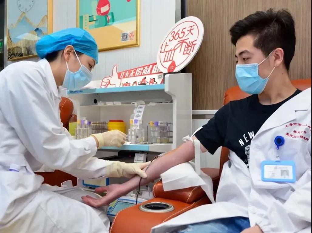 仪式过后,江桥医院十多位医务人员勇敢撸袖,献出一份热血,用实际行动践行守卫百姓生命安康的决心。经过严格的体检,8名医务人员达成心愿,献出了1600ml的鲜血。