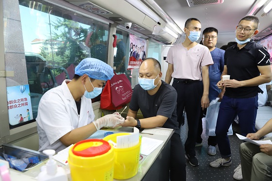 献血车刚到,就有部分职工在献血车前排队等待了。他们之中有的人献血多次,有的是第一次献血。初次献血的职工不免显得有些紧张,但经过工作人员耐心讲解和身边同事的亲身示范,紧张的情绪逐渐缓解下来,脸上也露出了笑容,献血后还对用血报销政策产生了浓厚的兴趣,纷纷表示,无偿献血既是一项利国、利民、利己的善举,也是每个健康公民应尽的义务,愿意为社会、为他人、为家人奉献绵薄之力,助力无偿献血事业。