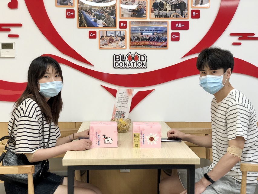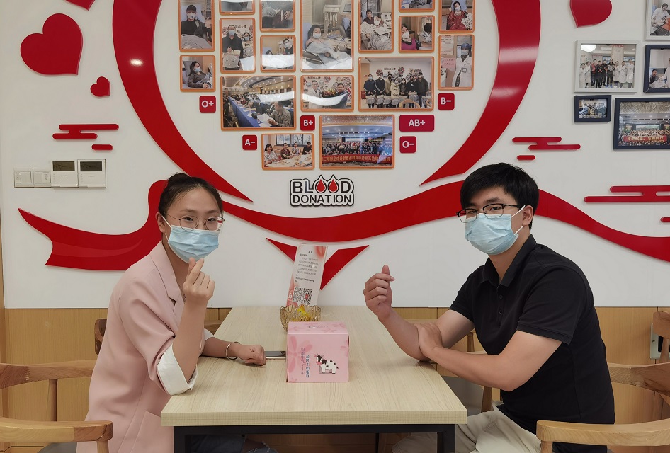 (图为献血者 董文鑫在女友的陪同下参加无偿献血)