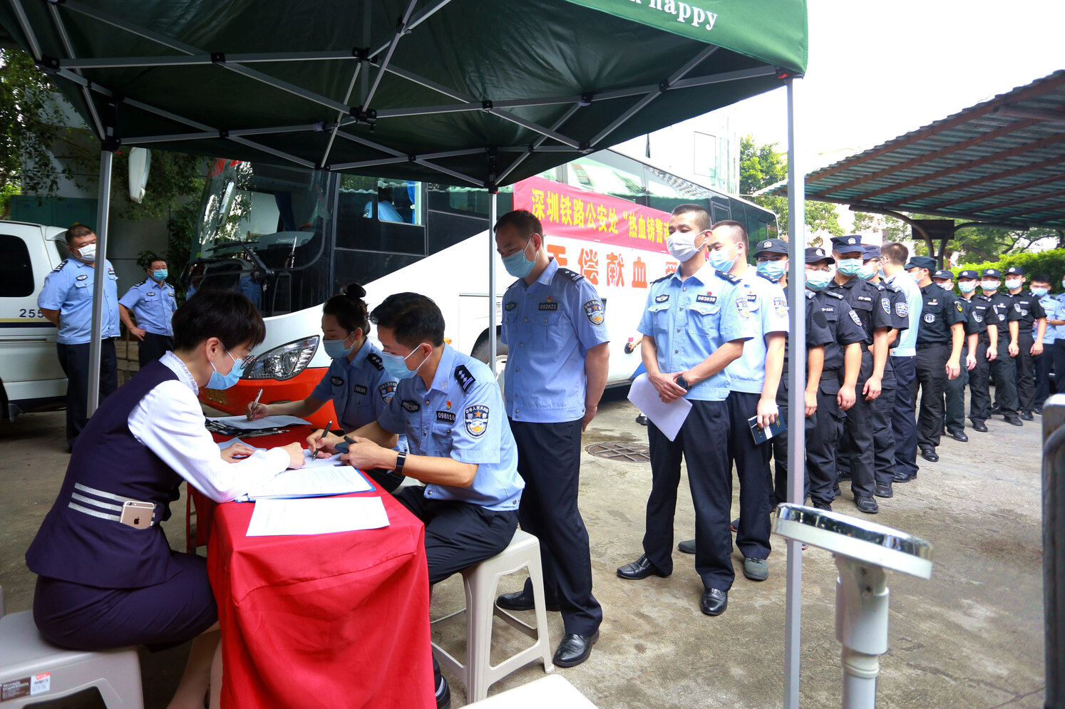 为进一步展示特区铁警热心公益、服务社会的良好风貌,彰显“人民公安为人民”的忠诚本色。2020年8月27日,深圳铁路公安处组织深圳地区单位党员干部、民警、辅警开展“热血铸警魂,忠诚为人民”献血活动。