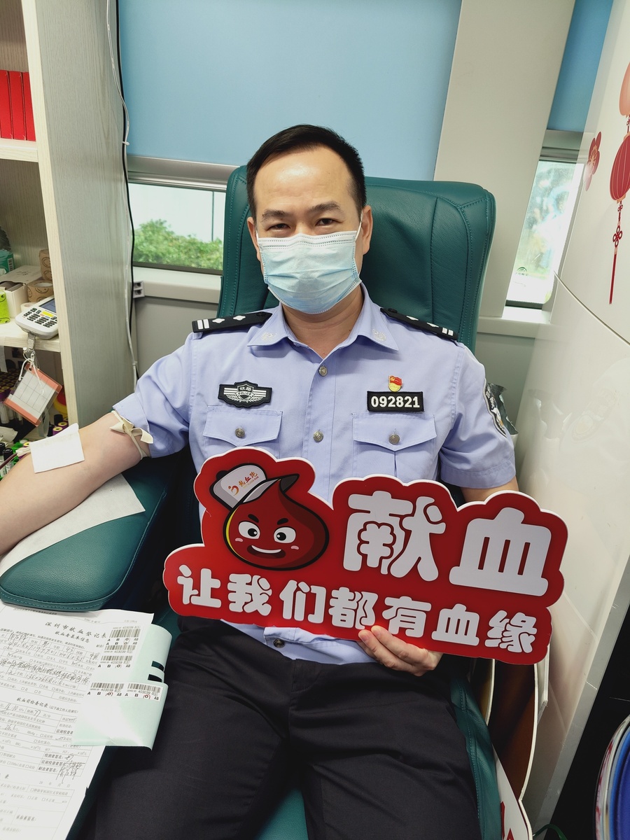 感谢深圳铁路公安处,积极组织了此次无偿献血活动!此次活动,一方面是近期“坚持政治建警,全面从严治警”教育整顿开展以来,全处民警全心全意为人民的服务意识的最好体现。另一方面,也号召了更多民警加入无偿献血者的行列,用爱心传递爱心,支持公益献血事业。