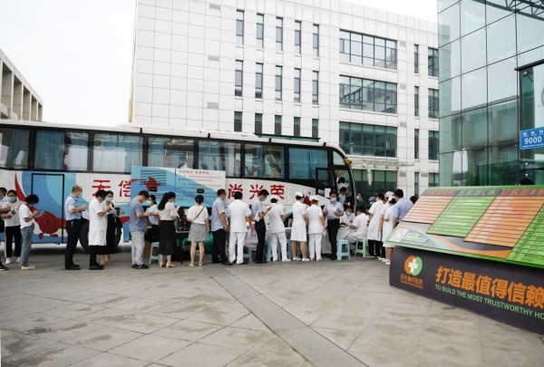 早上8点,活动现场已排起献血长队,有的医生为了按时到岗,提前去献血;有的护士刚值完班,就赶来献血……部分医务人员因某项指标未能达标不能献血,但也表示将加强身体锻炼,争取下次能够成功献血。