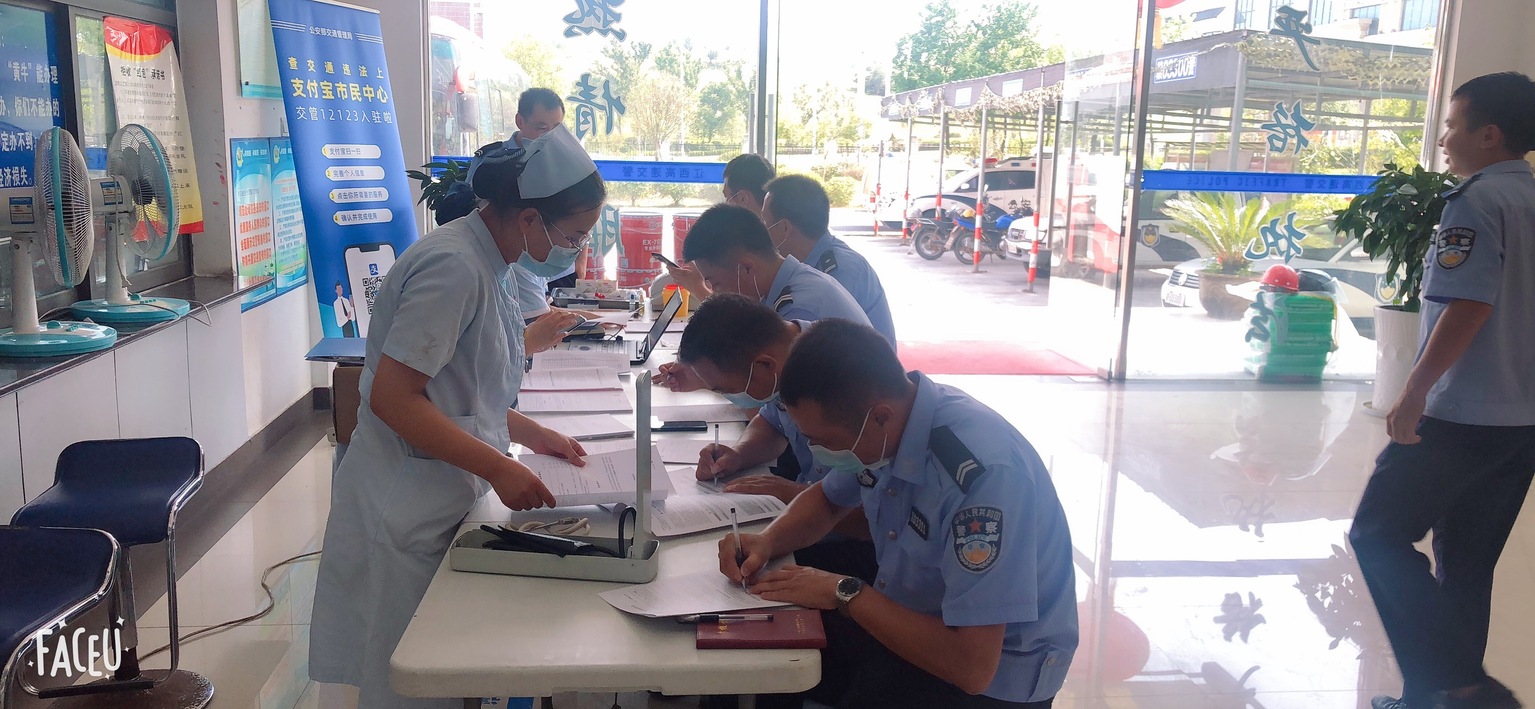 献血现场,高速交警们依旧用“热血”和“微笑”展示出高速交警特有的精神风貌,现场气氛热烈,秩序井然。