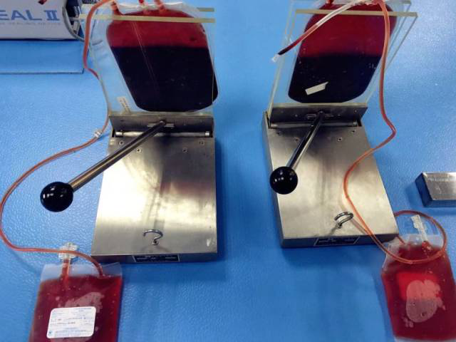 二、将红细胞用接驳机接驳上特殊的适合低温保存的血袋。