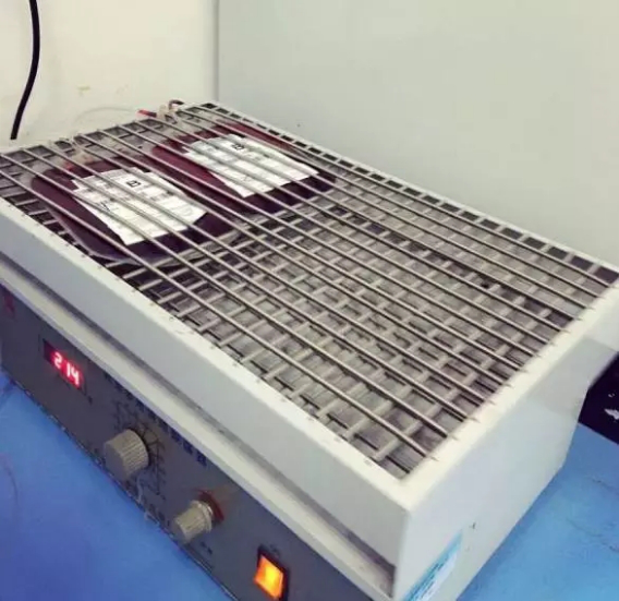 三、连接输液器,匀速加入甘油,并放在振荡器上边摇匀。