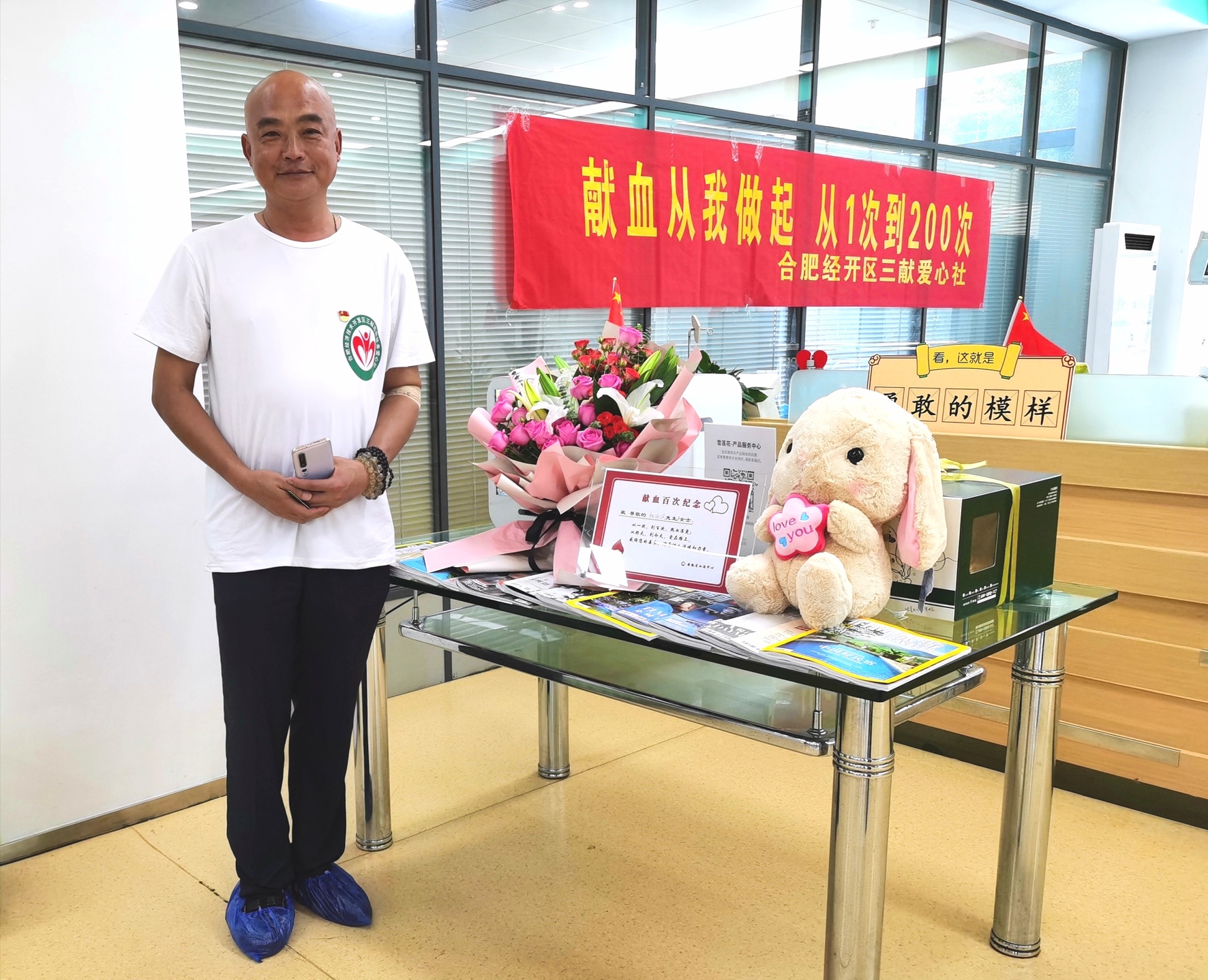 2020年9月3日,天空作美,晴空万里,安徽合肥经开区三献爱心社志愿者杨海滨在他自己的献血“成绩单”上大大地书写下200次。他怀着一颗无私的爱心,风雨无阻的坚持奉献,用热血挽救了一个又一个宝贵的生命,用奉献成就了生命的价值和辉煌!