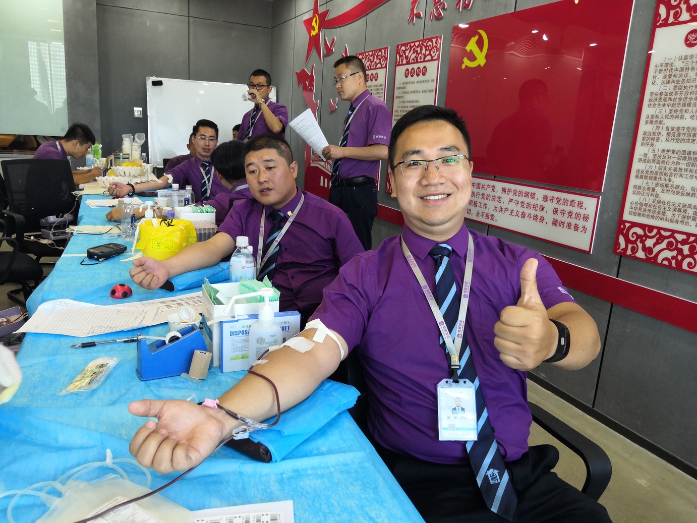 今天的活动现场,秩序井然,气氛热烈,当他们伸出手臂,鲜红的血液流出身体时,每一位员工脸上洋溢出的自豪,与他们无私奉献、助人为乐的大爱情怀让人肃然起敬。