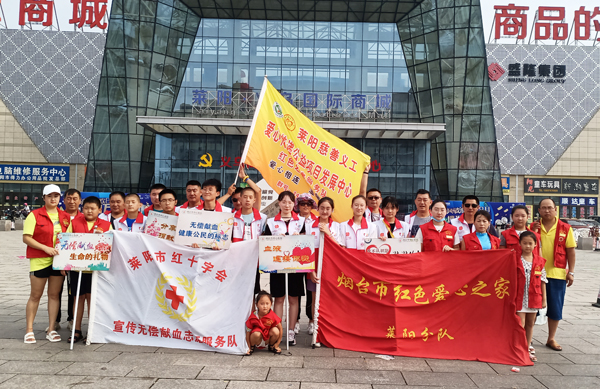 清晨,在提前约定的时间地点,烟台市红色爱心之家莱阳分队、莱阳市红十字会无偿献血服务队的35名志愿者准时集合,展开新一次无偿献血志愿服务宣传活动。在这些志愿者中,有2015年出生的稚儿,有1957年出生的长辈,他们在一起其乐融融,不畏高温,不怕流汗,不辞辛苦,沿街发放无偿献血宣传资料,历时三个小时的徒步宣传,共计发放宣传资料600余份。