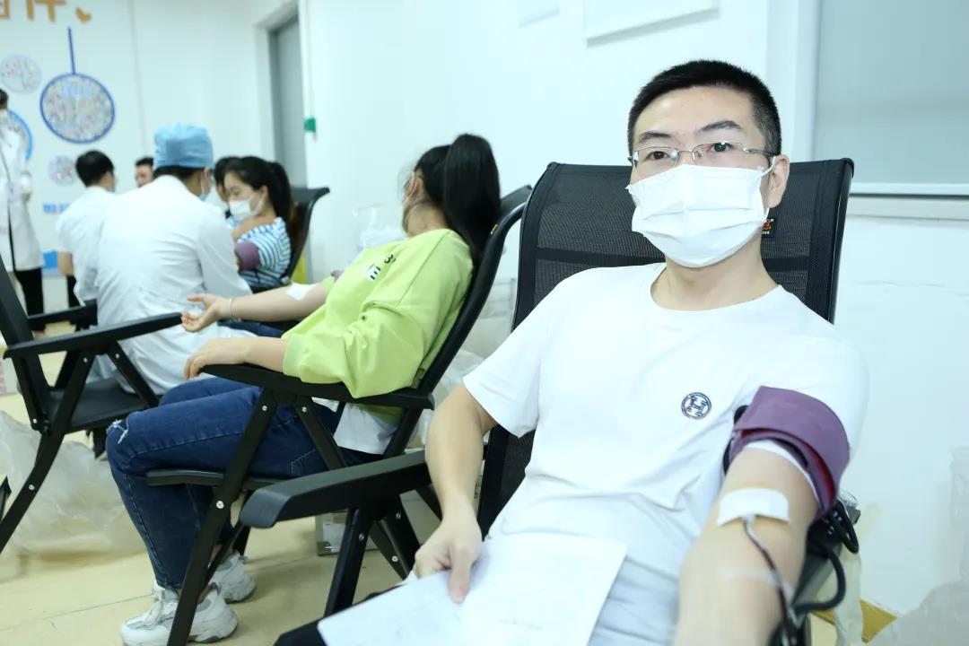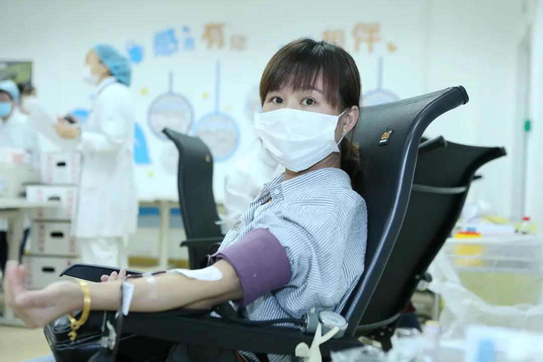 首次无偿献血的菅书晴边献血边笑着说:“第一次尝试献血,还挺轻松的,以后每年都会献的。”