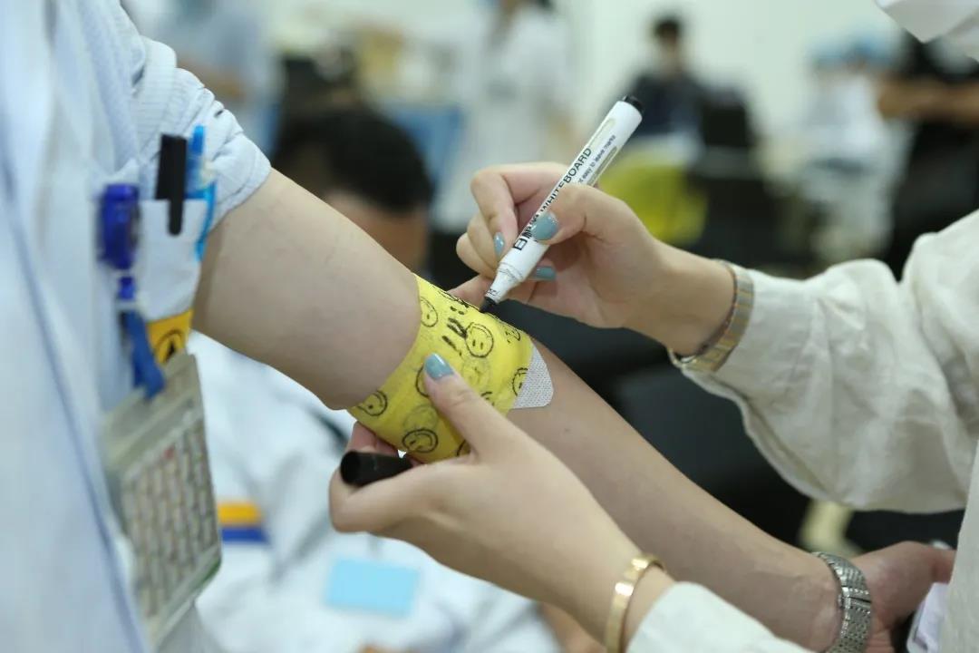 有过两次无偿献血经历的黄巧巧第一个赶来,体检合格后她毫不犹豫地伸出臂膀再次捐献出热血。