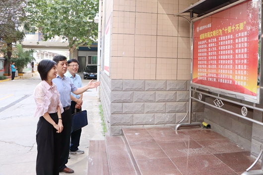 检查组实地查看了咸阳血站社会主义核心价值观宣传、公益广告设置以及好人事迹专栏、精神文明展板、图书阅览室等建设情况,全面督查了咸阳血站创文巩固提升工作情况。