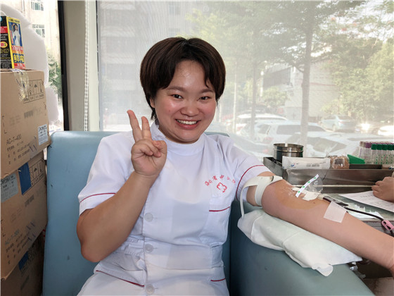 海南省中医院许多职工都已是坚持多年献血的老献血者,活动现场四处可见熟悉的面孔。八零后的李丽每次献血活动都会与采血护士们在献血车上“邂逅”。聊起献血,朴实的李丽似乎也没有太多的感想,只是觉得可以帮助到别人的事情,能多做一次就多做一次。